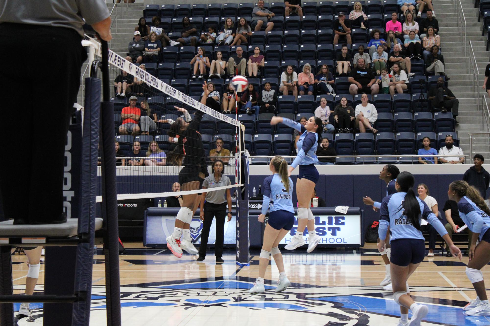 During the varsity volleyball game against Sachse on Aug. 19, junior Lexi Cooper jumps to hit the ball. It was Cooper’s second year on varsity. “Volleyball is my favorite thing,” Cooper said. Wylie East won 25-11.